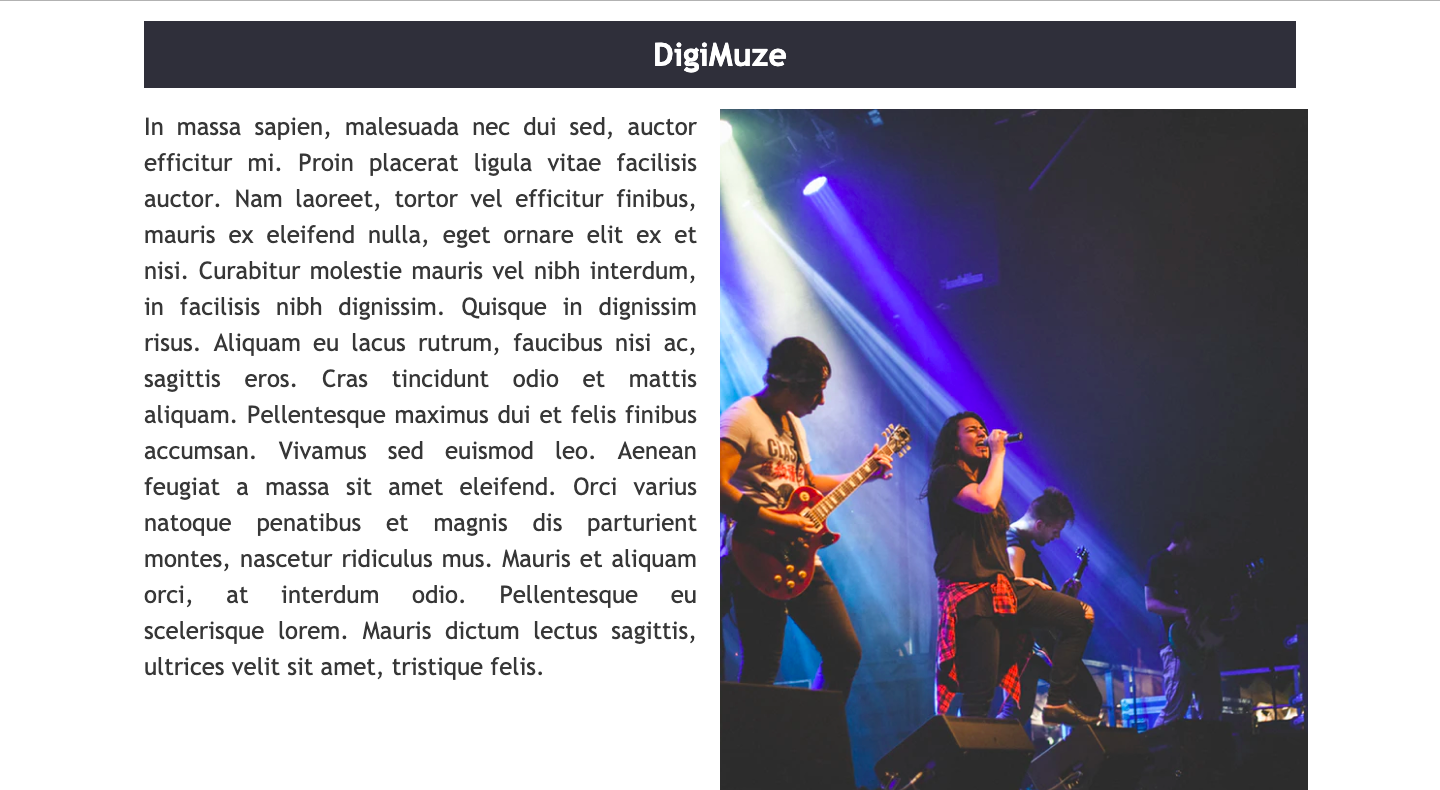 The next step is to add the code which actually contains the image and text for our website. Within the header element of our website, we want the text “DigiMuze” to display. To do this, we will use a